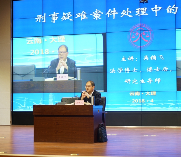 4月23日的世界读书日,大理中院聘请了中国政法大学法学博士、博士后、研究生导师吴镝飞教授并通过视频联线的方式为两级法院,举行了《刑事疑难案件处理中的方法论思考》的专题讲座。